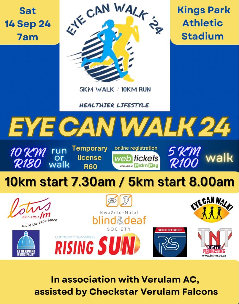 Mark your calendars for September 14, 2024, and join us at Kings Park Athletic Stadium for the Eye Can Walk Fun Run! This year’s event offers a 5km and 10km walk/run and is designed to be a day of fitness, fun, and advocacy. Starting at 7 AM, the run is a perfect opportunity to engage with the community and support a vital cause.